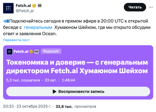 « Ils attendent de notre part une proposition légale pour restituer les jetons », a déclaré le PDG de Fetch.ai, Humayun Shaikh, lors d'un discours à X Spaces jeudi.