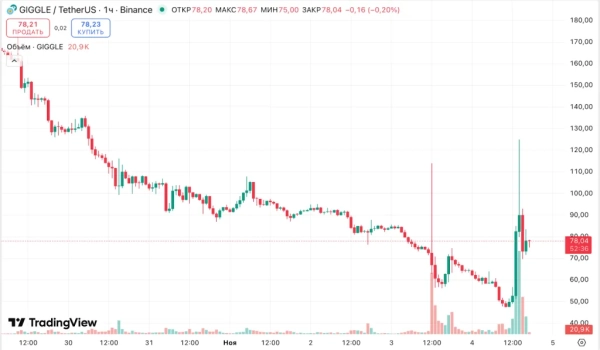 Graphique horaire Binance GIGGLE/USDT. Source : TradingView.