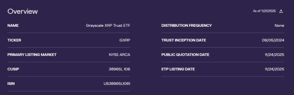 Le trading au comptant d'ETF basés sur l'altcoin XRP a également débuté le 24 novembre.