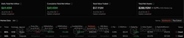 Grayscale Investments a lancé un fonds négocié en bourse (ETF) au comptant basé sur Solana et doté d'une fonctionnalité de staking. Les échanges sous le symbole GSOL débuteront le 30 octobre sur NYSE Arca.