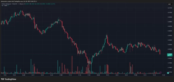 Graphique horaire Binance HBAR/USDT. Source : TradingView.