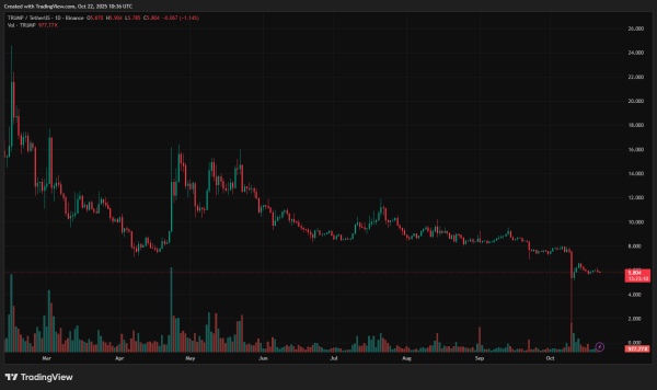 Le mème TRUMP, associé à la famille de l'homme politique Donald Trump, a connu une baisse significative de sa valeur depuis son plus haut historique. Sa capitalisation boursière a chuté de près de 91 % au cours des neuf derniers mois, selon TradingView.