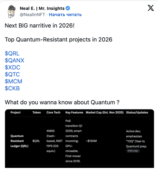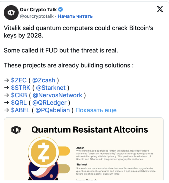 Les analystes prévoient que la résistance quantique deviendra un sujet clé d'ici 2026, sous l'impulsion à la fois des impératifs technologiques et de la dynamique du marché. Des projets majeurs, tels que Zcash, Starknet, Nervos Network, Quantum Resistant Ledger et Abelian, attirent des capitaux de la part d'investisseurs soucieux de se prémunir contre les vulnérabilités futures.