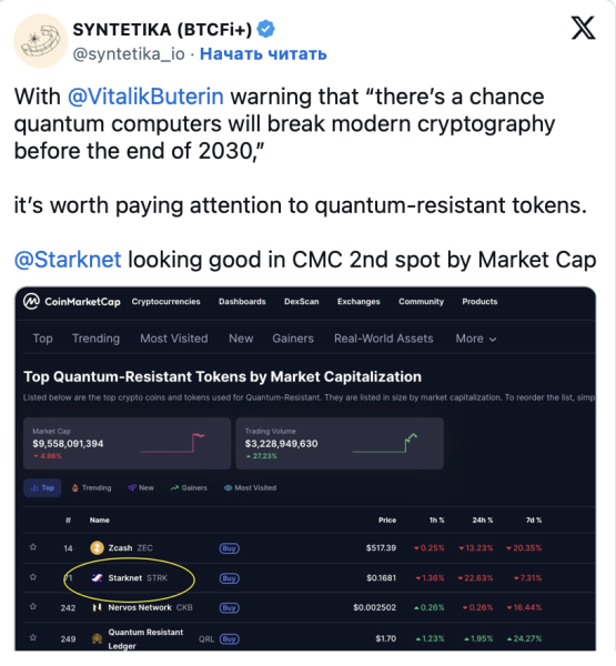 Les experts soulignent l'importance d'une mise en œuvre proactive. Le classement de Starknet à la deuxième place parmi les jetons de cette catégorie le confirme. La conception du projet, résistante à l'informatique quantique, le distingue des protocoles qui pourraient rencontrer des difficultés de migration à l'avenir.
