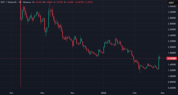 Le 25 février 2026, le prix du Polkadot ( $DOT ) a grimpé de plus de 40 % en une seule journée. À son apogée, la capitalisation boursière de cet actif est passée d'environ 2,15 milliards de dollars à près de 3 milliards de dollars, selon CoinMarketCap.