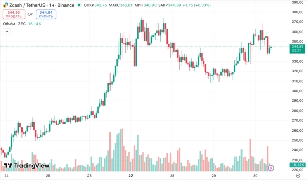 Le cours du Zcash continue de progresser. Au cours des dernières 24 heures, la cryptomonnaie a gagné 8,6 % et, sur la semaine écoulée, 46,4 %. À l'heure où nous écrivons ces lignes, elle s'échange à 344 $.