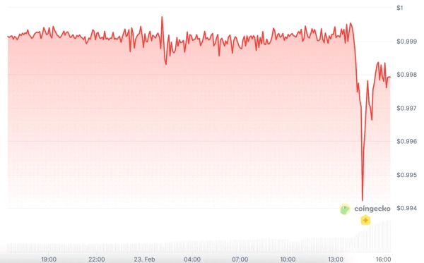 Au cours de la journée, le prix du jeton a chuté à 0,994 $, soit 0,6 % en dessous de l'objectif de 1 $, selon les données de CoinGecko.