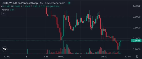 Graphique USDX/WBNB en 15 minutes sur PancakeSwap. Source : DEX Screener.