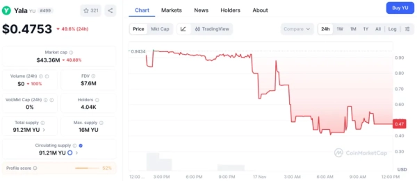 Le 17 novembre, le stablecoin YU du projet Yala a perdu sa parité avec le dollar américain. Ce phénomène a été constaté par des membres de la communauté.