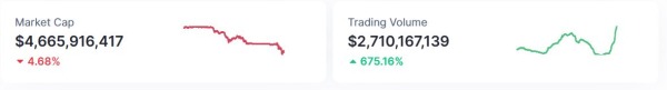 Selon Coinmarketcap, le plus important stablecoin adossé à l'or, le XAUT de Tether, a enregistré un volume d'échanges de 1,5 milliard de dollars sur 24 heures. Son principal concurrent, le PAXG de Paxos, a affiché un volume d'échanges de 1,1 milliard de dollars sur la même période. Le volume total des échanges dans cette catégorie de cryptomonnaies a dépassé 2,7 milliards de dollars.