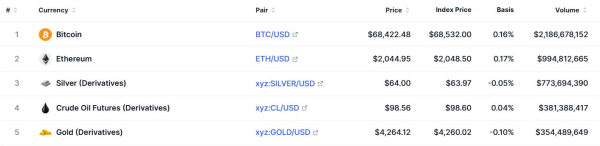 Sur la plateforme d'échange décentralisée Hyperliquid, les contrats à terme sur l'or figurent parmi les cinq premiers en termes de volume d'échanges, avec 354 millions de dollars. Seuls les contrats sur le Bitcoin, l'Ethereum, l'argent et le pétrole affichent un volume supérieur. L'intérêt ouvert (OI) pour les contrats à terme sur l'or s'élève à 214 millions de dollars.
