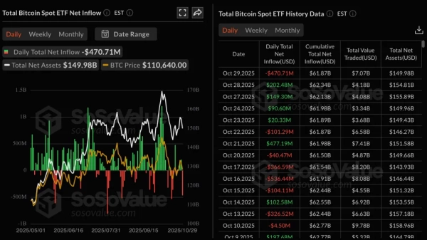 Les fonds négociés en bourse (ETF) Bitcoin ont enregistré des sorties de capitaux de 470 millions de dollars.