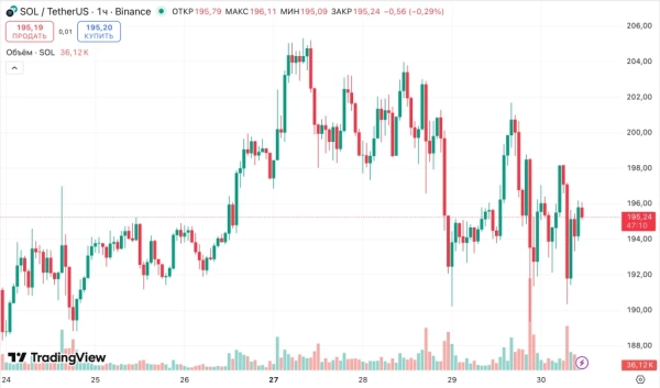 Le prix du Solana n'a pas encore connu de variation significative. Au cours de la semaine écoulée, il a progressé de 4,4 % et de 0,1 % ces dernières 24 heures. À l'heure actuelle, le SOL s'échange à 195 $.