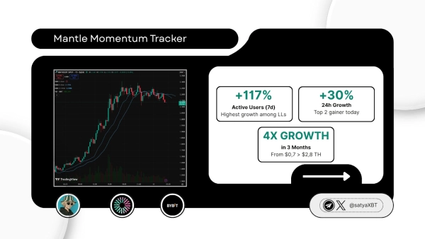 Le nombre d'adresses Mantle actives a augmenté de 117 % en une semaine, soit la croissance la plus rapide de tous les L2, selon le détective blockchain SatyaXBT.