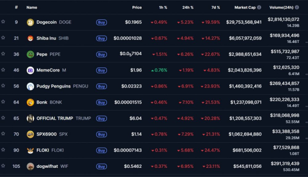 Figure 2. Le prix du Memcoin a chuté de plus de 10 %. Source : CoinMarketCap.