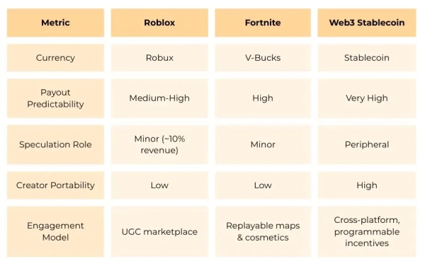 Le rapport de la BGA soutient que les actifs numériques indexés sur la monnaie fiduciaire, autrefois considérés uniquement comme des instruments de paiement ou une source de liquidités pour la finance décentralisée, deviennent désormais une infrastructure financière invisible. Elle détermine la manière dont les développeurs rémunèrent les créateurs, fixent les prix des produits et fidélisent les joueurs.