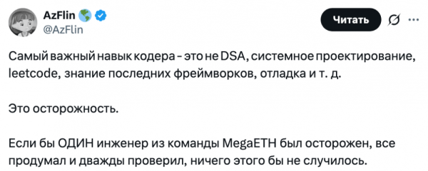 Certains utilisateurs ont salué la transparence de MegaETH dans ses explications concernant l'incident, tandis que d'autres ont exprimé de vives critiques. AzFlin, développeur et fondateur de la DAO, a déclaré que ces erreurs auraient pu être évitées si les ingénieurs avaient fait preuve de plus de rigueur.