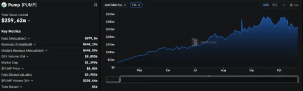 Malgré la crise, Pump.fun génère environ 1 million de dollars de chiffre d'affaires par jour. En septembre, ce chiffre atteignait 3 millions de dollars.