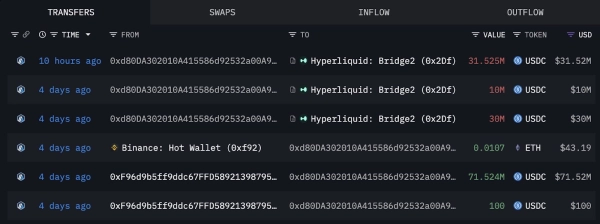 Plus tôt mercredi, la baleine de portefeuille « 0xd80D » a également acheté pour 31 millions de dollars de jetons XPL sur Hyperliquid, portant son total d'avoirs à 40,2 millions de dollars, selon un article publié samedi par la plateforme blockchain Lookonchain.