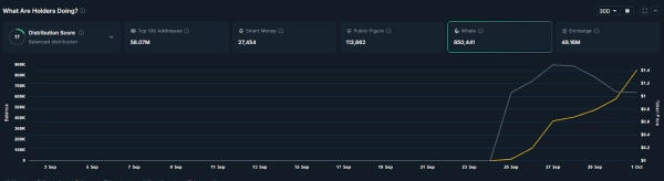 Selon la plateforme d'analyse crypto Nansen, les avoirs nets de jetons XPL dans 226 portefeuilles ont augmenté de plus de 1,16 million de dollars au cours de la semaine dernière, tandis que 3,83 millions de dollars de jetons XPL ont été retirés des échanges au cours de la même période.