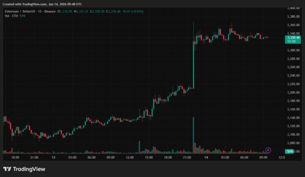 Graphique ETH/USDT sur Binance (15 minutes). Source : TradingView.