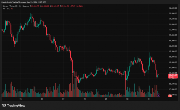 Le prix du Bitcoin se situe autour de 66 300 $. Au cours des dernières 24 heures, cet indicateur a baissé de 2,1 % et, au cours des sept derniers jours, de 6,8 %.