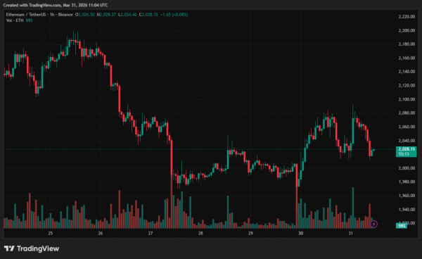 Au moment de la rédaction de cet article, la principale cryptomonnaie alternative se négocie aux alentours de 2 000 $. Au cours des dernières 24 heures, son prix a diminué de 1,9 % et, sur la semaine, de 6,4 %.