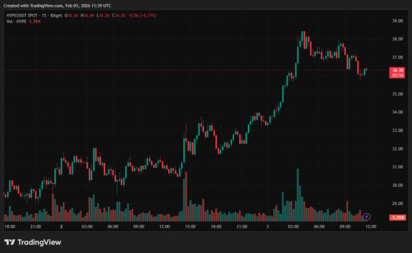 Graphique en 15 minutes de la paire HYPE/USDT sur Bitget Exchange. Source : TradingView.