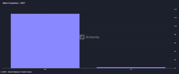 Volume cumulé de valeur transférée sur la blockchain en USDT pour 2025. Source : Artemis.