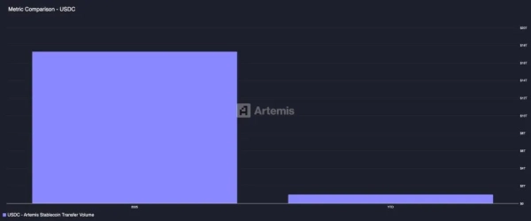 Le volume de valeur transférée sur la blockchain via le stablecoin USDC de Circle l'année dernière s'élevait à 17,3 billions de dollars, dépassant ainsi les 12,9 billions de dollars de l'USDT de Tether, selon les données de la plateforme d'analyse Artemis.