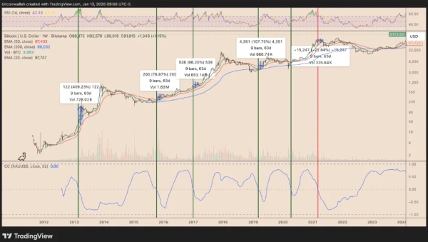 La corrélation sur 52 semaines entre le Bitcoin et l'or est tombée à zéro pour la première fois depuis mi-2022. Cet indicateur pourrait devenir négatif d'ici la fin janvier, selon Yashua Gola, analyste chez Cointelegraph.