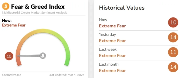 Le sentiment général sur le marché reste pessimiste, malgré la hausse de 9,5 % du prix du Bitcoin la semaine dernière. L'indice de peur et d'avidité est retombé à 10.