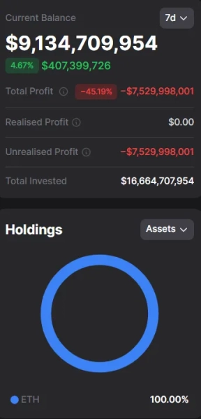 Depuis juillet, la société a acquis environ 4,4 millions d'ETH. Selon la plateforme DropsTab, la valeur de ces réserves a diminué de 45 % en raison de la chute du taux de change. Les pertes latentes de BitMine s'élèvent désormais à 7,5 milliards de dollars.