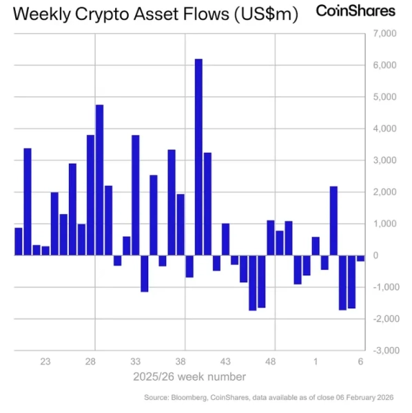 Pour rappel, du 26 au 30 janvier, les produits basés sur des actifs numériques ont subi une sortie de capitaux de 1,7 milliard de dollars.