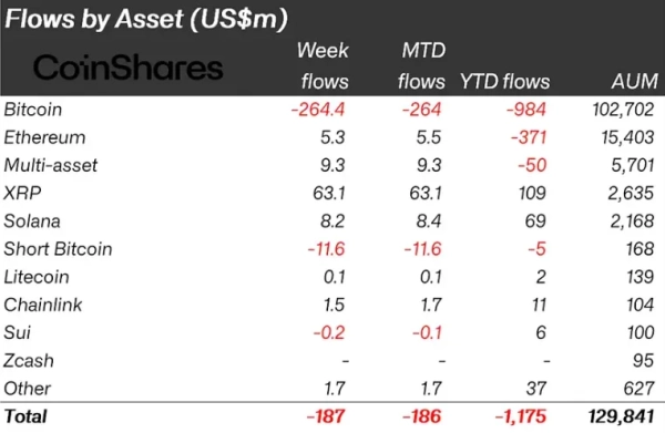 Les sorties de fonds des produits d'investissement en cryptomonnaies ont ralenti à 187 millions de dollars. Les analystes de CoinShares considèrent ce ralentissement comme un signe de la fin probable de la correction du marché.