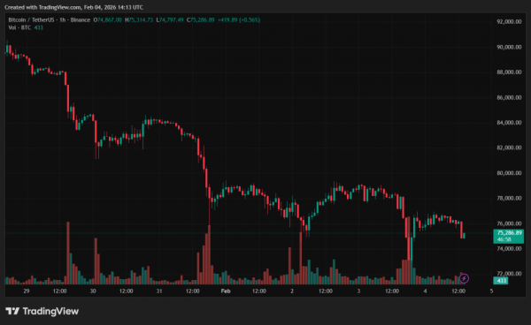 Au moment de la rédaction de cet article, le Bitcoin se négocie autour de 75 300 dollars, après s’être partiellement redressé suite à une chute à 73 000 dollars.