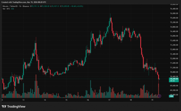 Au moment de la rédaction de cet article, le prix du Bitcoin est de 69 800 $. Au cours des dernières 24 heures, cet indicateur a diminué de 5,5 %.