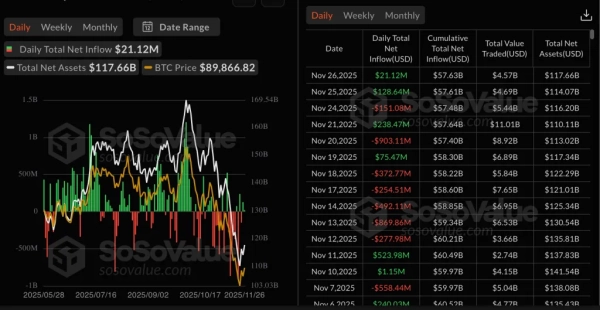 Malgré deux jours d'afflux de capitaux totalisant 129 millions de dollars, la tendance générale reste négative. Depuis début novembre, les ETF ont perdu 3,5 milliards de dollars, soit leur deuxième plus mauvaise performance depuis leur lancement.