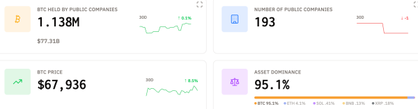 Le total des actifs sous gestion des entreprises détenant des bitcoins à leur bilan s'élève à 77,3 milliards de dollars. Source : BitcoinTreasuries.