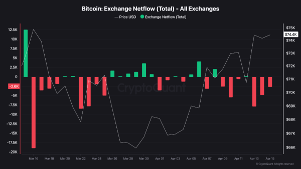 Le 15 avril, le Bitcoin ( BTC ) a de nouveau réagi avec prudence à la hausse continue du marché boursier américain, atteignant de nouveaux sommets historiques. En fin de journée, son cours frôlait les 75 000 $.