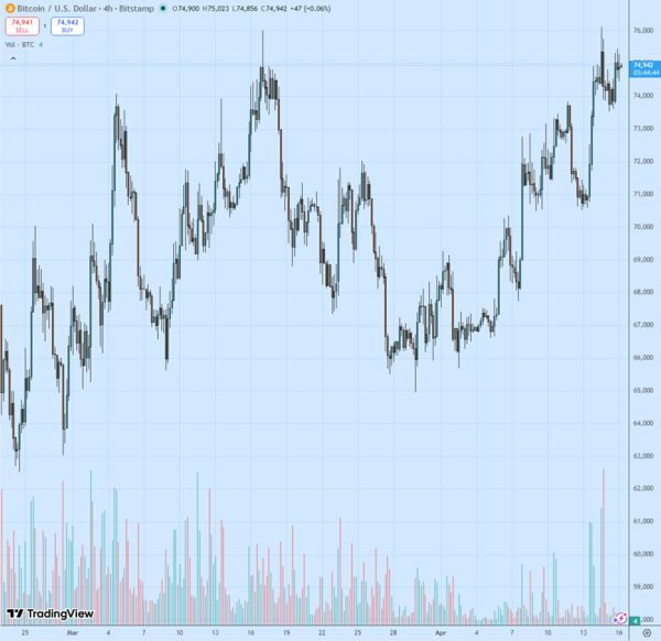 Bitcoin : Bilan du 16 avril – Le prix entame la conquête des 75 000 $