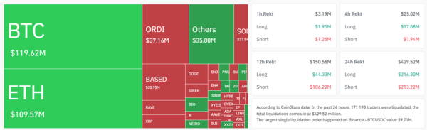 Selon Coinglass, les liquidations de positions longues sur Bitcoin ont totalisé 69 millions de dollars au cours des dernières 24 heures, tandis que les liquidations de positions courtes ont totalisé 50,7 millions de dollars.