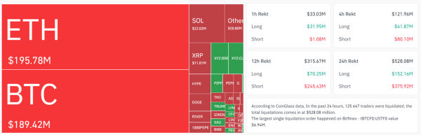 Selon Coinglass, au cours des dernières 24 heures, les liquidations de positions courtes sur Bitcoin (160,4 millions de dollars) ont représenté 81,9 % du total, y compris les liquidations de positions longues.