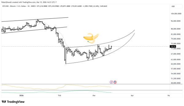 L'analyste technologique Peter Brandt a souligné que le rebond actuel de la première cryptomonnaie s'est transformé d'une « banane » en une « corne ».