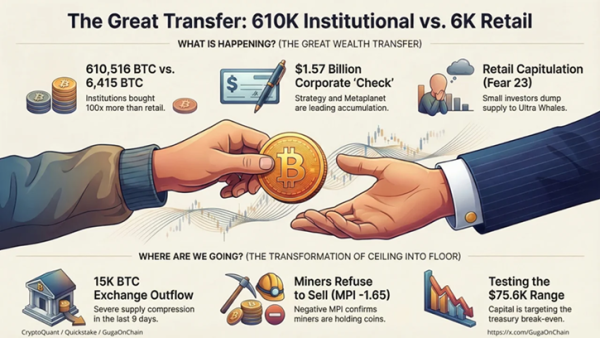 CryptoQuant a noté des signes d'un « transfert important » de cryptomonnaies des investisseurs particuliers et des mineurs vers les institutions.