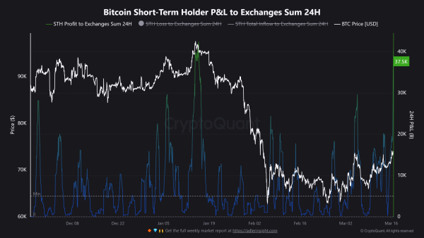L'analyste Maartunn a enregistré une forte augmentation des transferts de Bitcoin par des investisseurs à court terme vers des plateformes d'échange centralisées, atteignant un pic de 37 500 $ BTC le 15 janvier.