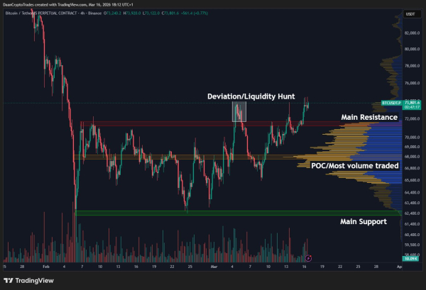 Le trader Daan Crypto Trades a signalé une troisième tentative de franchissement du seuil des 74 000 $. L'expert a indiqué qu'une consolidation serait probable si le prix clôturait au-dessus de ce niveau dans un délai d'un à deux jours.