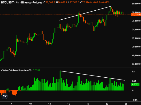 Après une récente consolidation autour de 78 300 $ et une lutte dans le corridor, le Bitcoin ( $BTC ) a corrigé au niveau de 77 500 $ le 25 avril.
