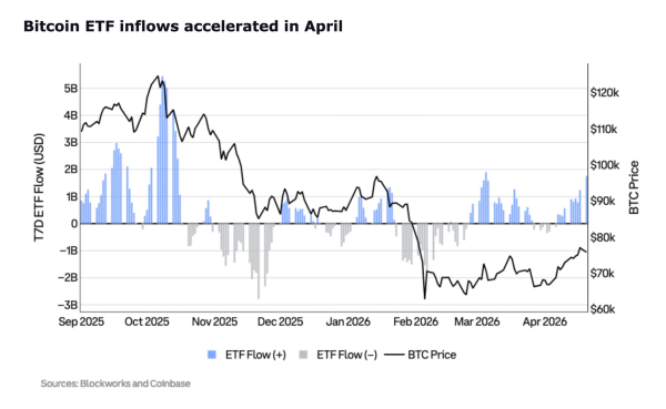 Malgré la faiblesse du marché au comptant de détail, la situation est différente pour les investisseurs institutionnels. Les analystes de Coinbase Institutional notent que « la reprise actuelle pourrait être plus forte qu'il n'y paraît au premier abord ».