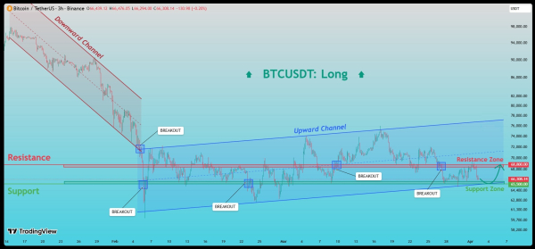 Niveaux clés : support – 65 500 $, résistance – 68 800 $.
